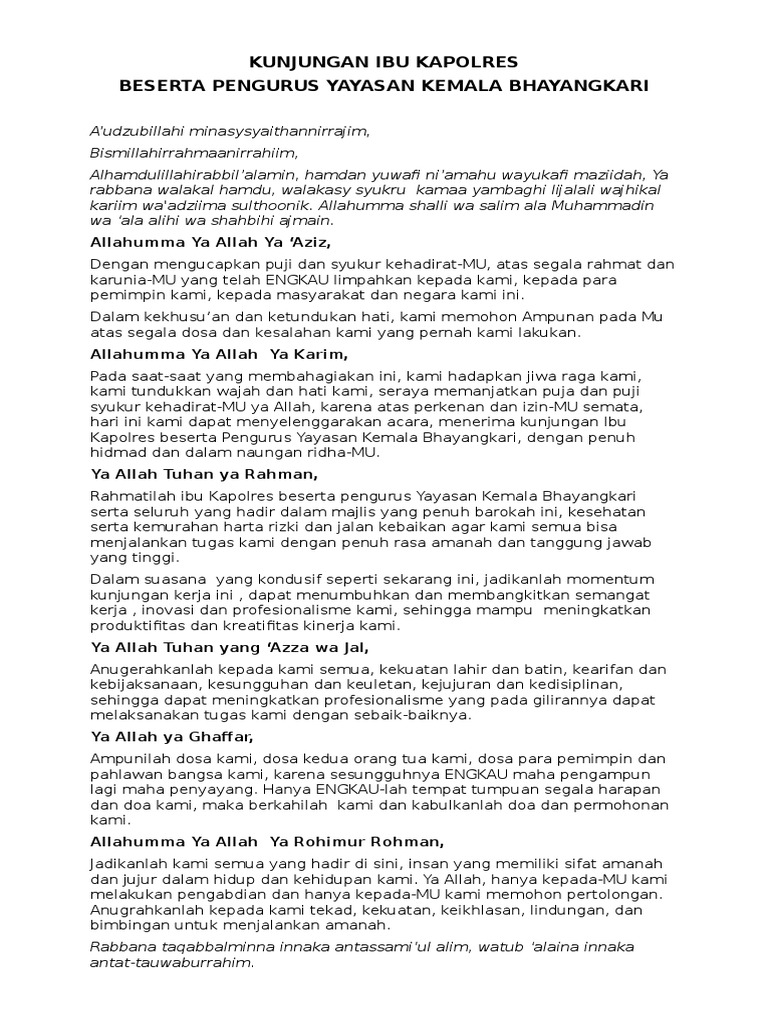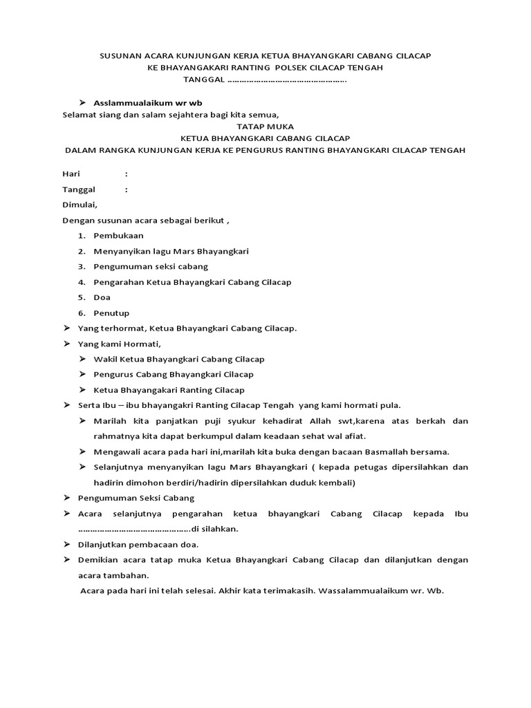 Susunan Acara Kunjungan Kerja Ketua Bhayangkari Cabang Pdf